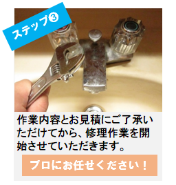 栗東市の水漏れなら、お申込みから作業完了のお支払いまで簡単4ステップ!まずはフリーダイヤルまでお気軽にお電話ください。経験豊富な栗東市の近畿水道サポートセンター担当スタッフがご自宅までお伺いいたします。